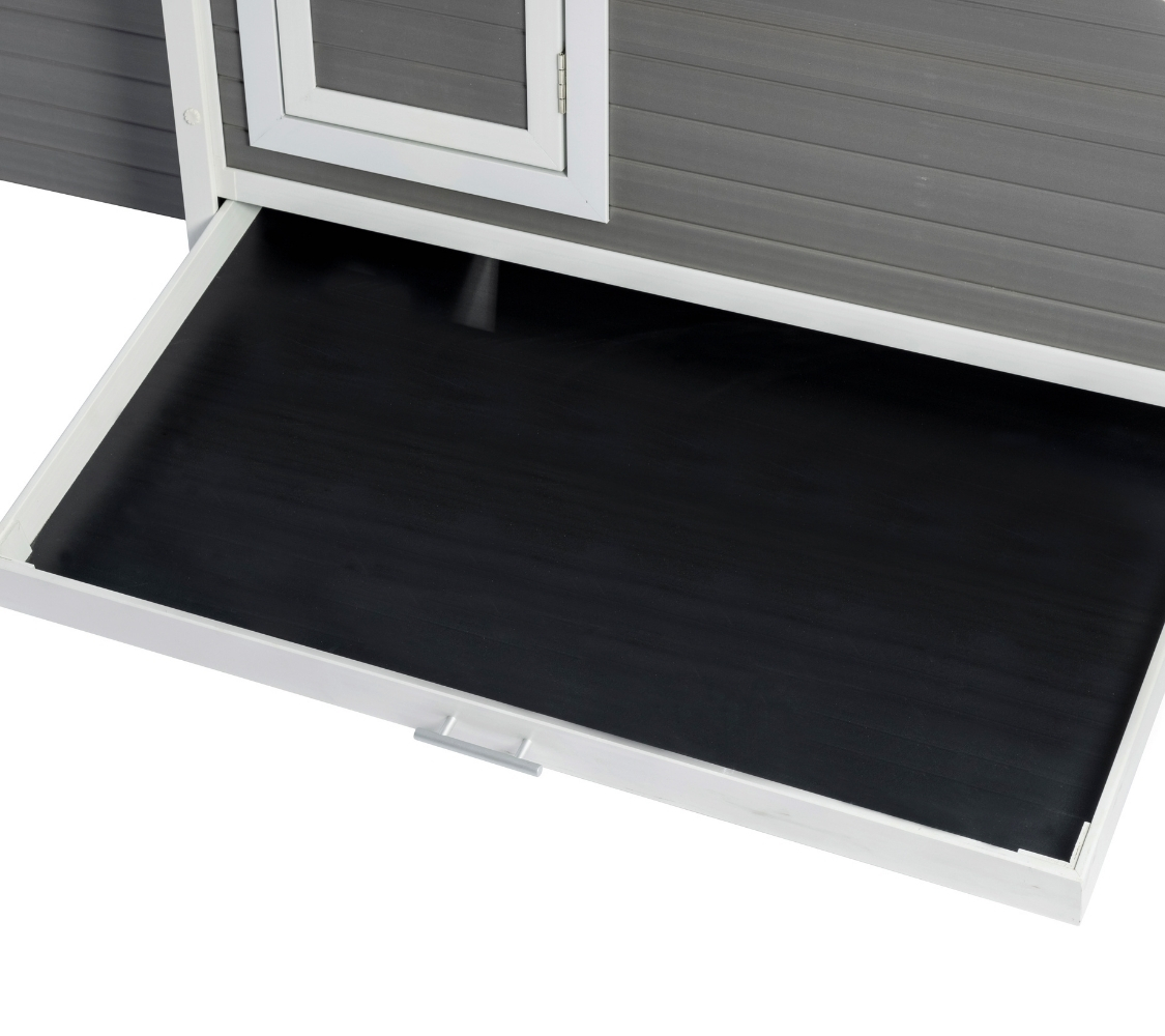 Incorpora una bandeja extraíble de excrementos situada bajo las perchas, que facilita enormemente la limpieza del gallinero. Gracias a este sistema, es posible retirar los residuos de forma rápida y mantener el interior limpio con mucho menos esfuerzo.
