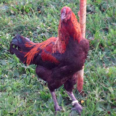 La raza Shamo se obtuvo en Japón a partir del Combatiente Malayo. Llama la atención por su verticalidad y sus tarsos amarillos. Es un ave musculosa, sin cresta aparente y con la cola inclinada hacia abajo. Tiene orejillas rojas y pico amarillo. Su mirada es agresiva. El peso mínimo del gallo es 4 kg y el de la gallina mínimo 3 kg.